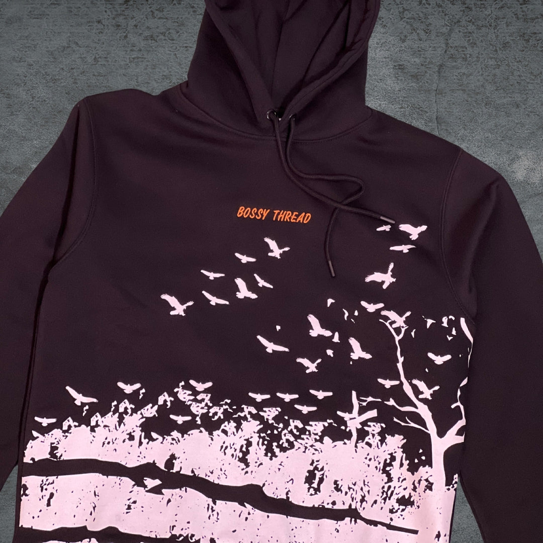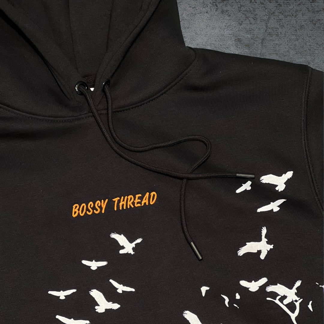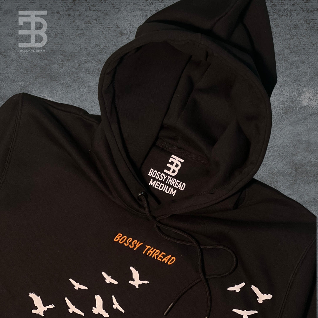 This black hoodie features a unique painted design across the front, adding a vibrant, artistic touch to its sleek and minimalist style. The colorful artwork is meticulously applied, creating a bold contrast against the dark background. Additionally, an embroidered logo is subtly placed on the chest, offering a premium, textured look. Made from soft, high-quality fabric, the hoodie combines comfort with standout visual elements, making it perfect for those who appreciate both style and craftsmanship. Ideal for casual wear, it pairs effortlessly with jeans or joggers for a relaxed yet eye-catching outfit.